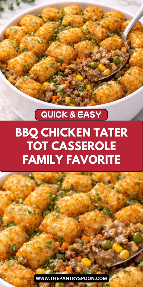 I’ll show you how to layer shredded chicken with tangy BBQ sauce, cheese, and crispy tater tots in one dish.