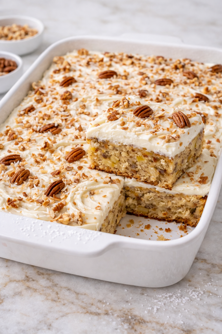 Just one bite of this tropical Hummingbird Sheet Cake with pineapple, banana and cream cheese frosting will have you...
