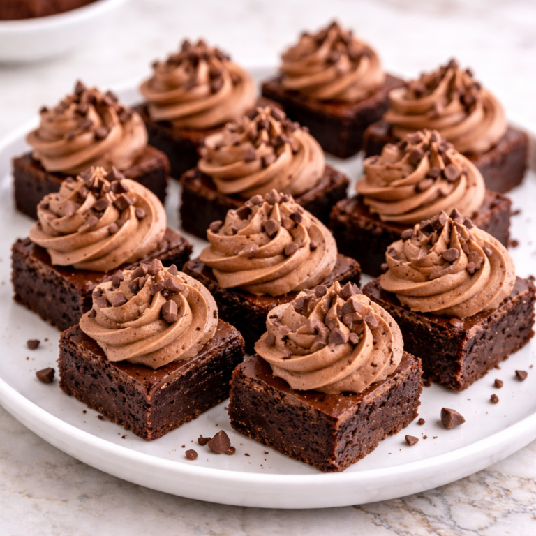Mouthwatering brownie bites topped with chocolate mascarpone offer the perfect balance of fudgy and creamy textures in every bite.