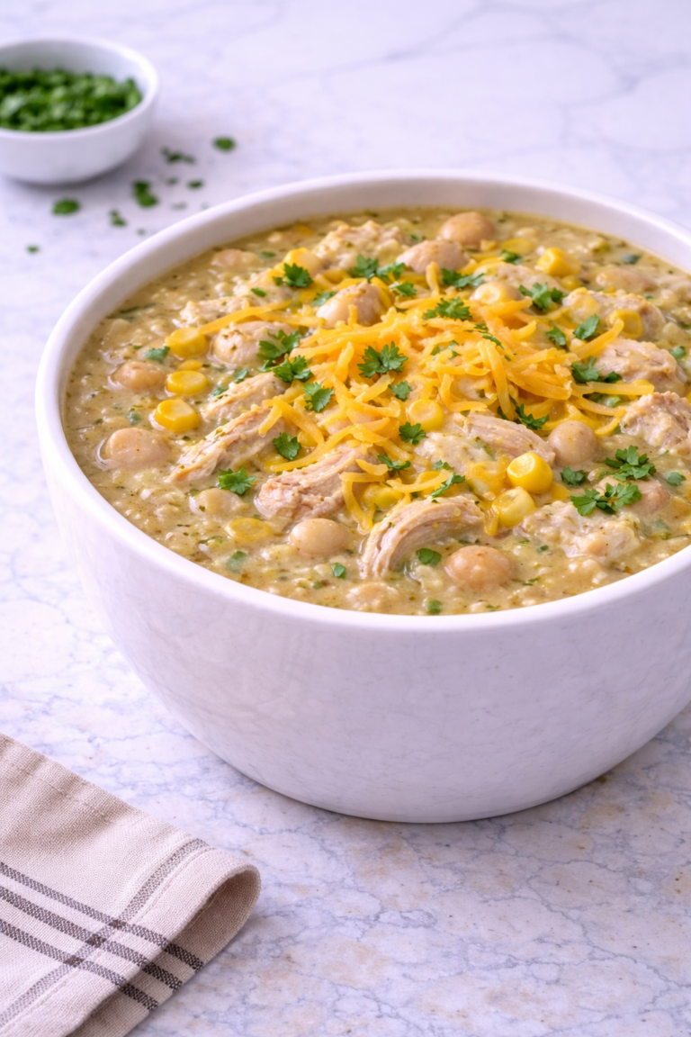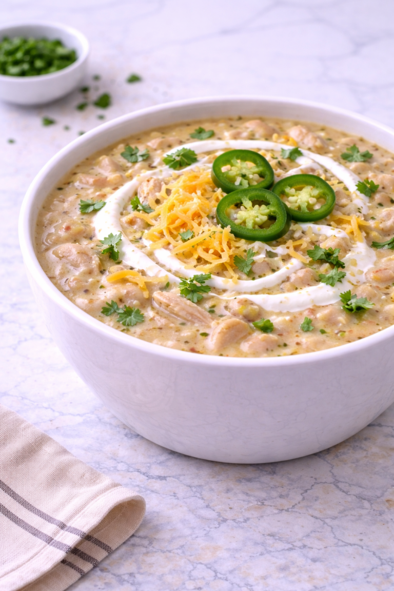 This soul-warming creamy white chicken chili combines tender chicken, velvety cream cheese, and mild green chiles for the ultimate cold-weather comfort.