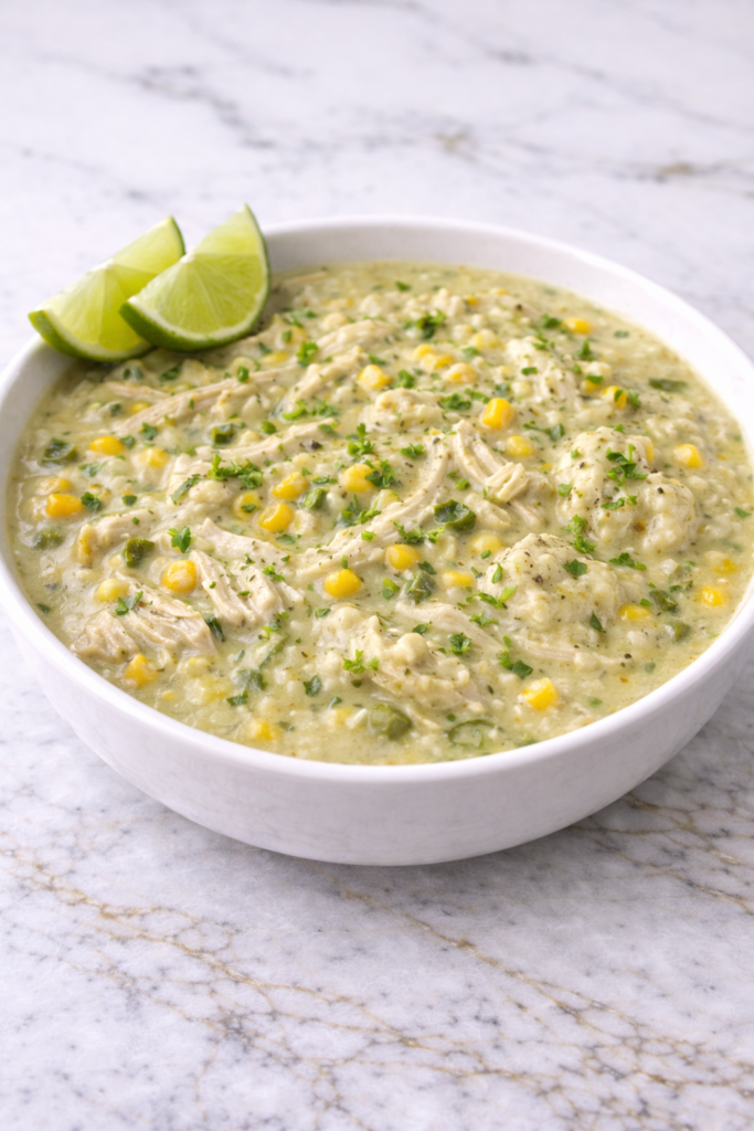 I’m obsessed with how the tender chicken thighs melt into the creamy, spice-infused broth. The combination of fire-roasted corn and Hatch green chiles gives it that perfect balance of sweetness and heat.