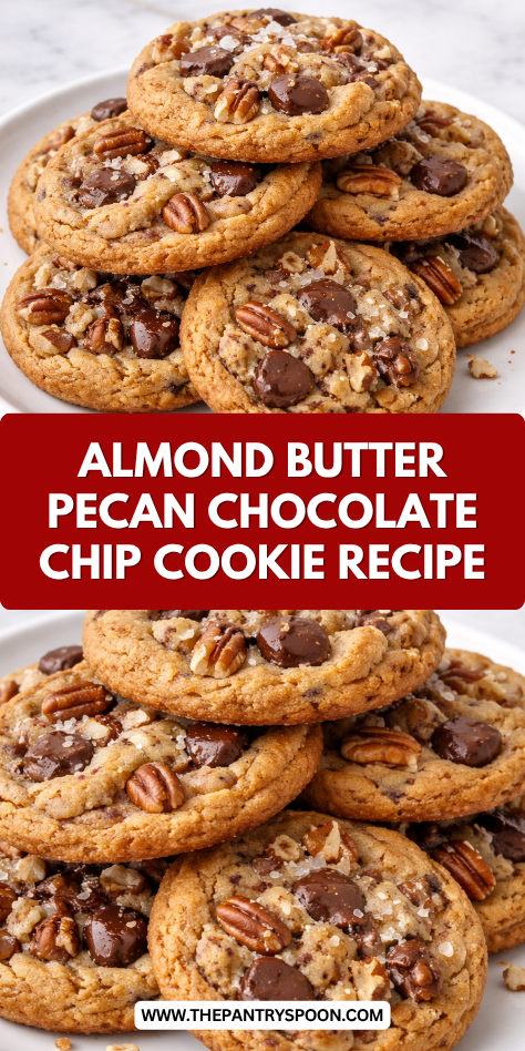 These Crunchy Almond Butter Pecan Chocolate Chip Cookies might just be the holy grail I’ve been searching for. Imagine the nutty richness of almond butter, the buttery crunch of pecans, and melty chocolate chips all coming together with that irresistible crisp-edge, soft-center texture.