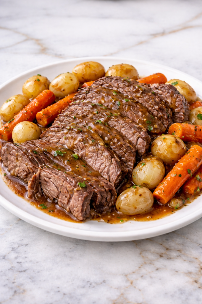 This classic crockpot pot roast represents everything wonderful about slow cooking—tender, fall-apart meat, flavor-infused vegetables, and a rich sauce that brings it all together.