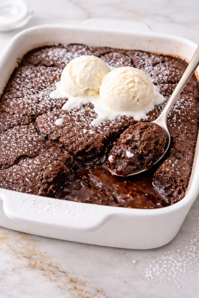 This gooey chocolate masterpiece practically begs for a scoop of vanilla ice cream—the cold creaminess against that warm pudding layer is absolutely non-negotiable in my book.