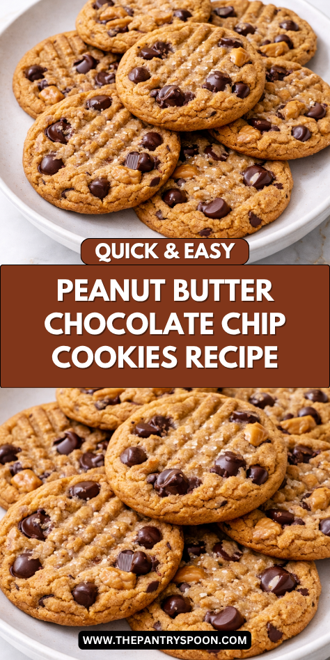 These Peanut Butter Chocolate Chip Cookies (Soft & Chewy) bring together two classic flavors in the most comforting way. They are rich, soft, and easy to make, making them perfect for any occasion.