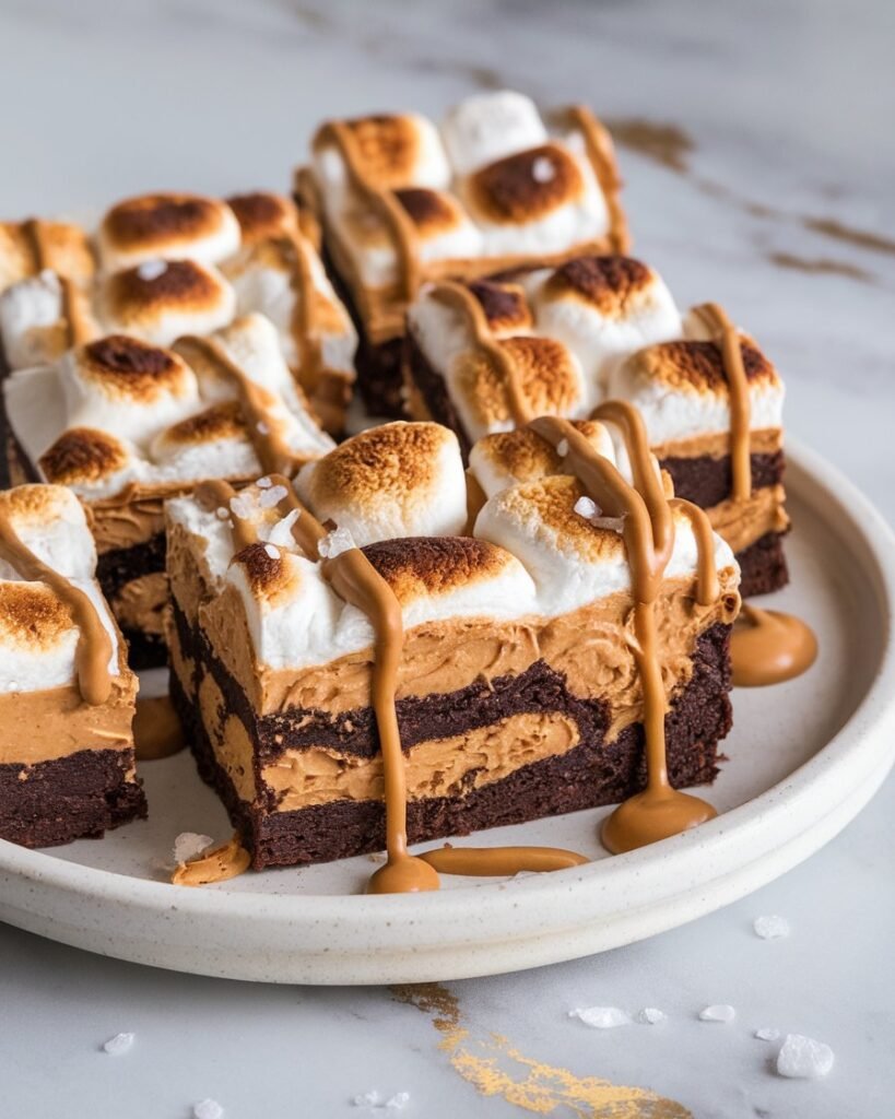 The contrast of the golden peanut butter and white marshmallow against the dark chocolate is simply gorgeous.