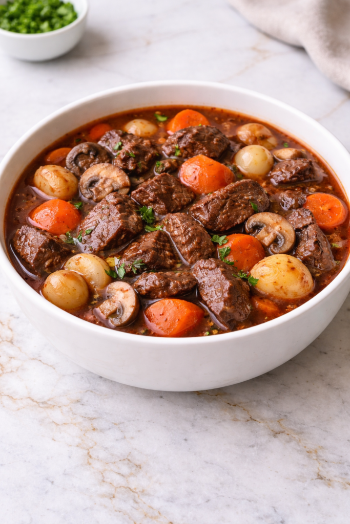 I’m telling you, this isn’t just dinner—it’s a warm hug in a bowl. The tender chunks of beef practically melt in your mouth, while the robust red wine sauce creates depth that store-bought stews can’t touch.
