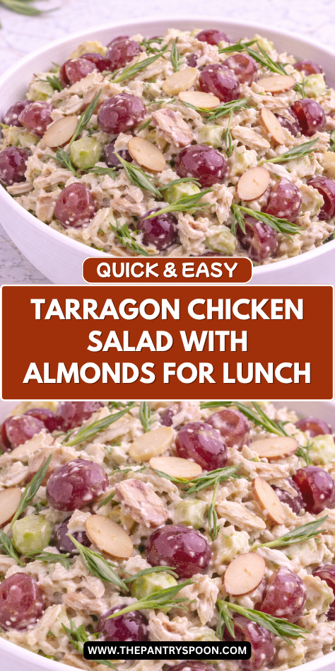 Tarragon has this subtle anise flavor that works really well with chicken — it’s fresh and slightly herby in a way that feels a little elegant without being fussy. Almonds give it a gentle crunch that makes every bite more satisfying.