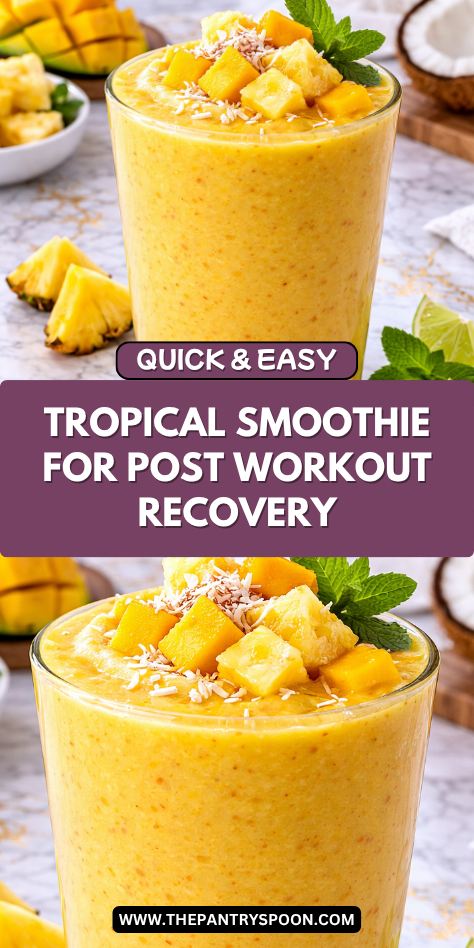 This smoothie is a great option for a refreshing post-workout drink that helps you feel recharged and satisfied. It pairs well with a small snack like nuts or a protein bar. The tropical flavor makes it easy to enjoy.